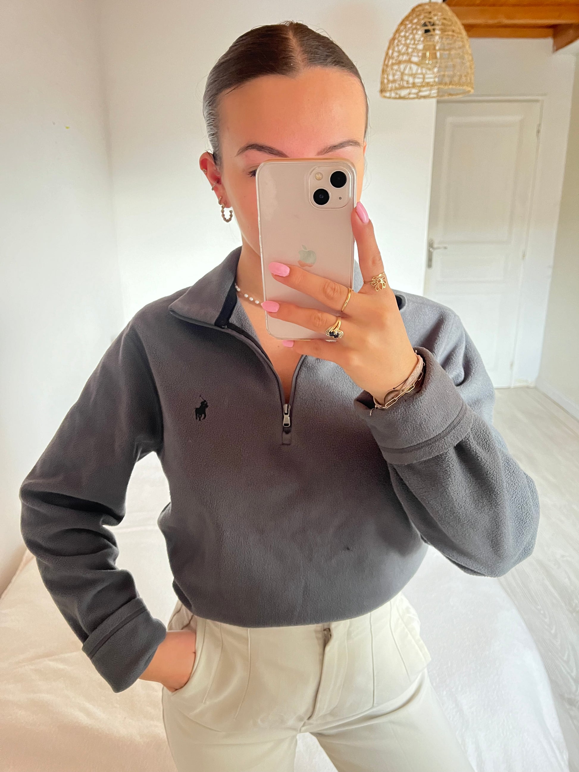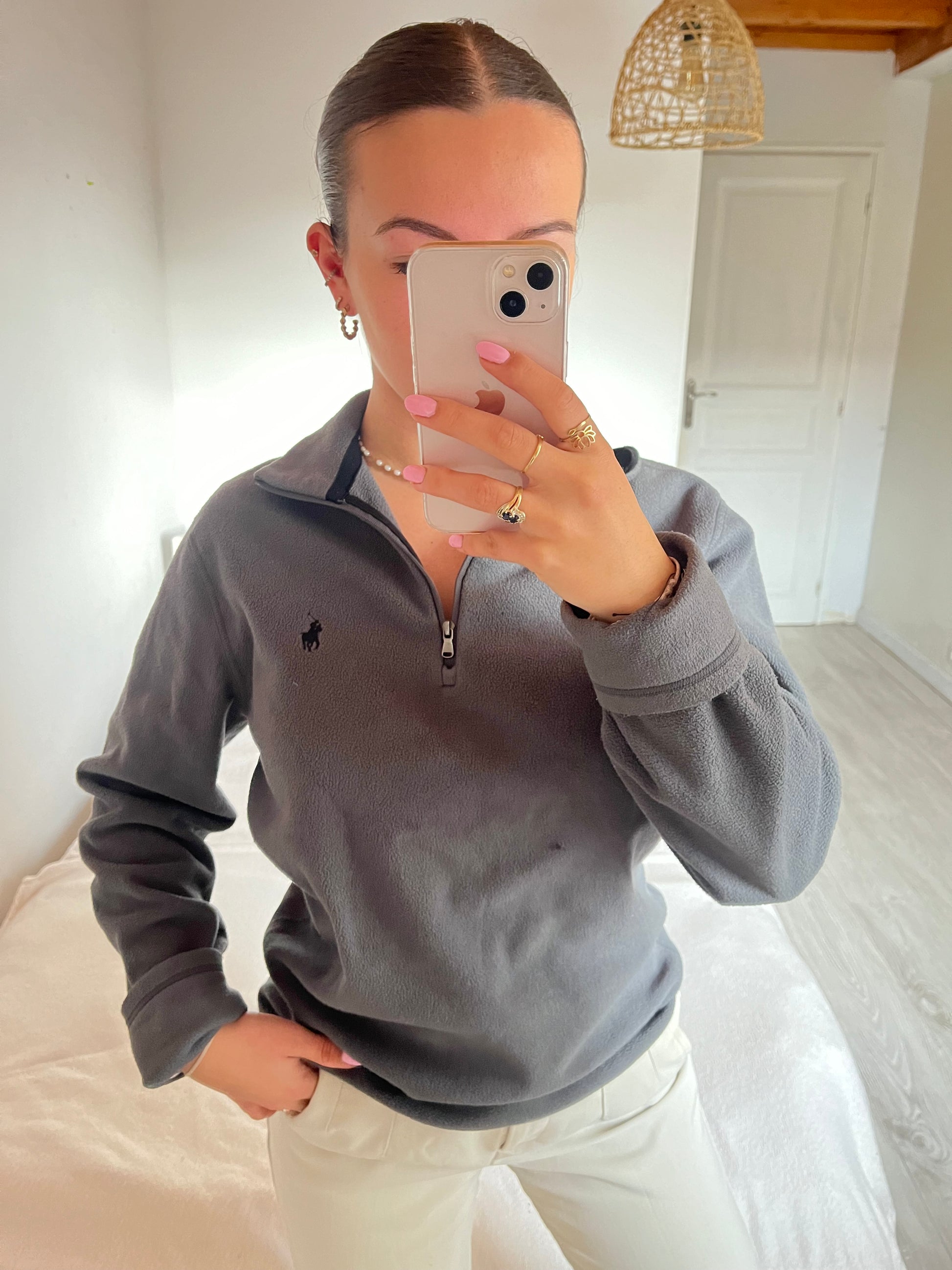 Polaire demi-zip grise Ralph Lauren - S femme / XS homme