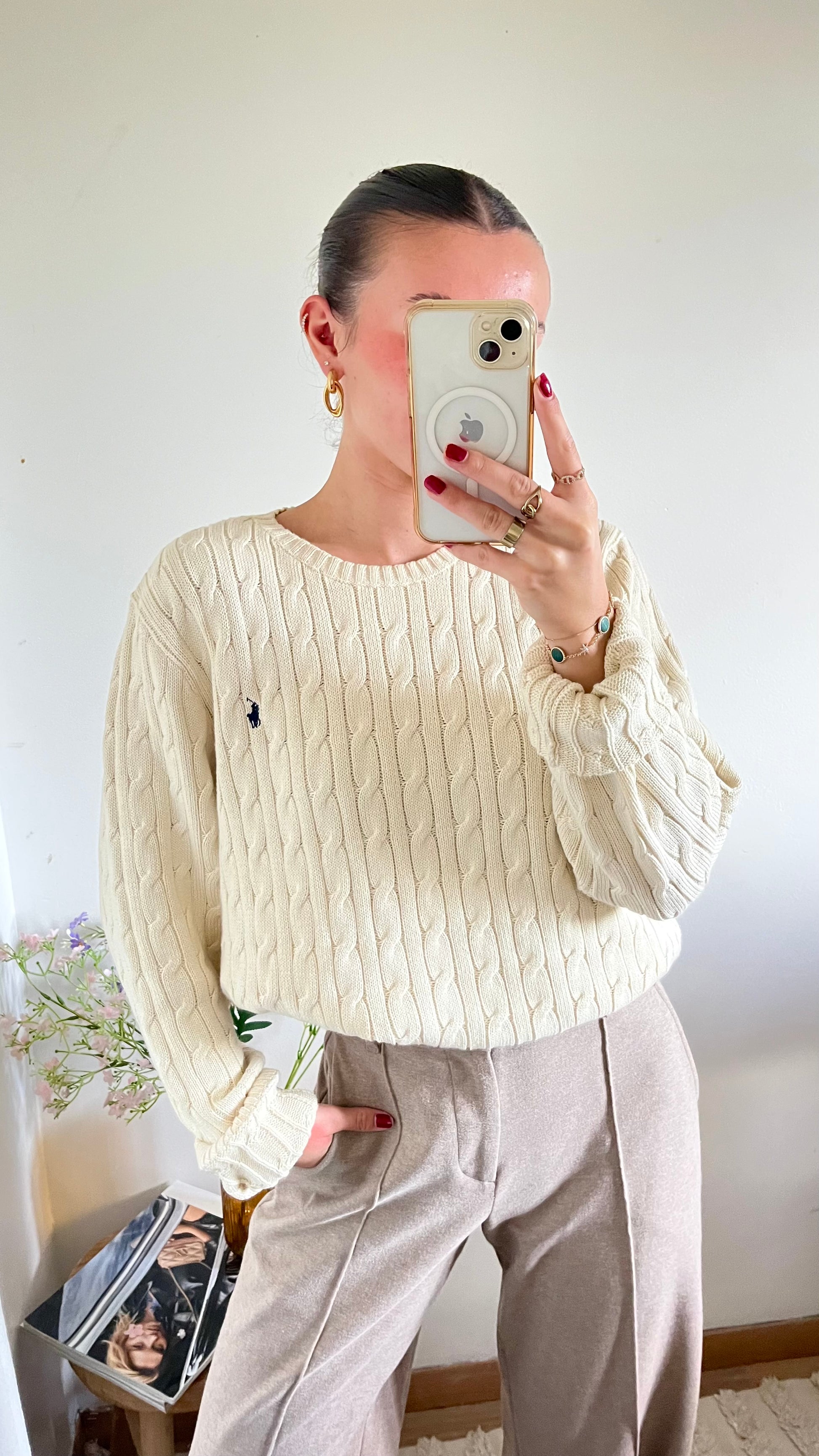 Pull col rond torsadé crème Ralph Lauren - L femme / M homme
