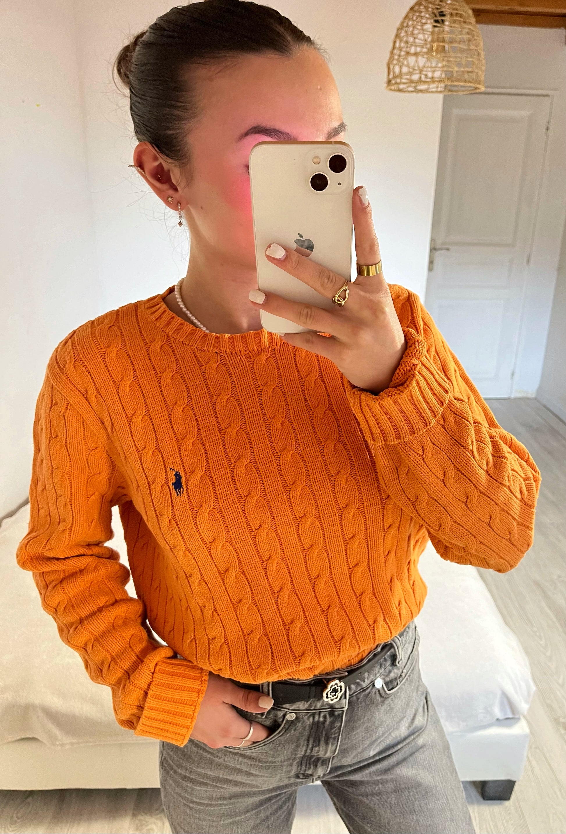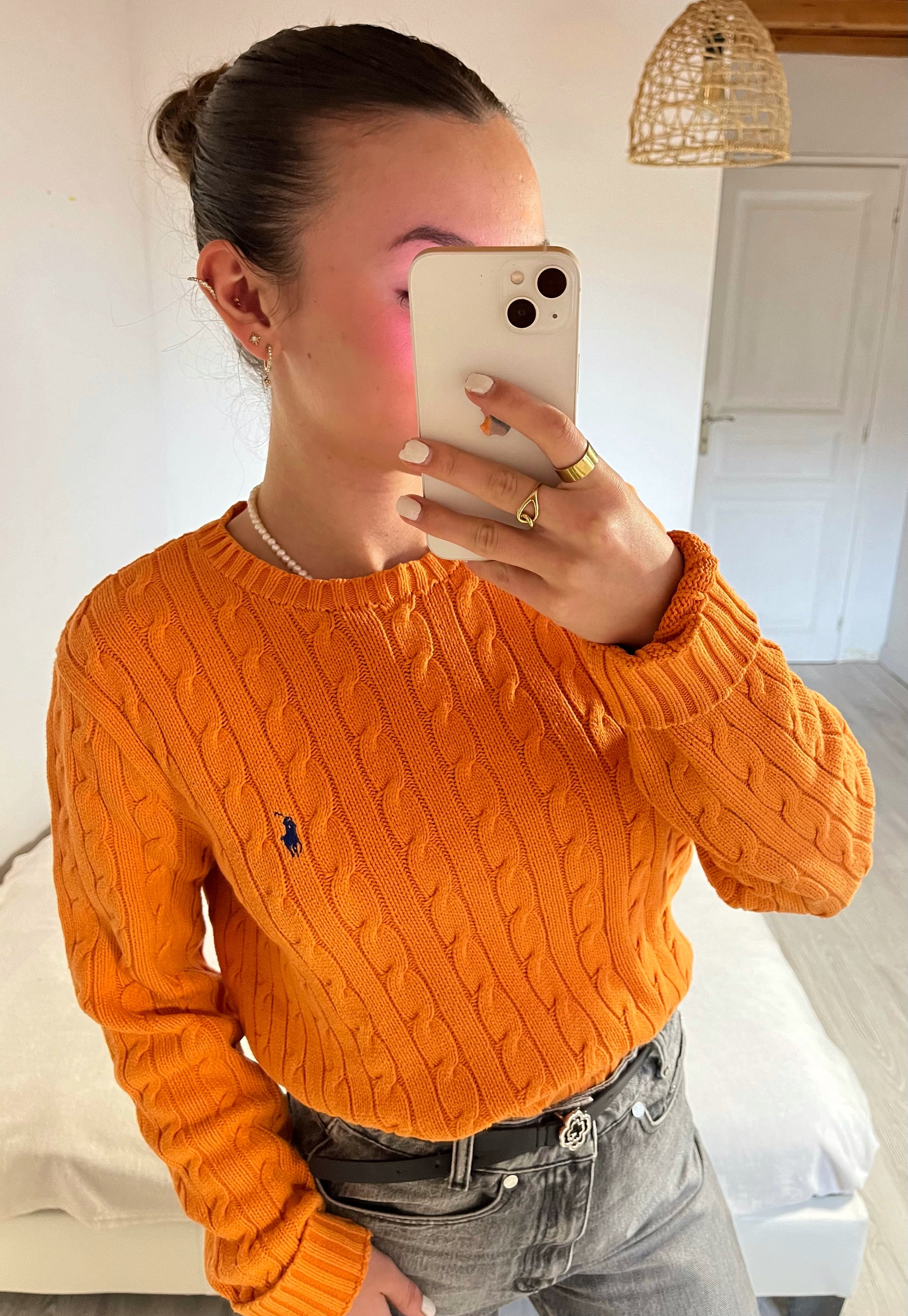 Pull torsadé col rond orange Ralph Lauren - L