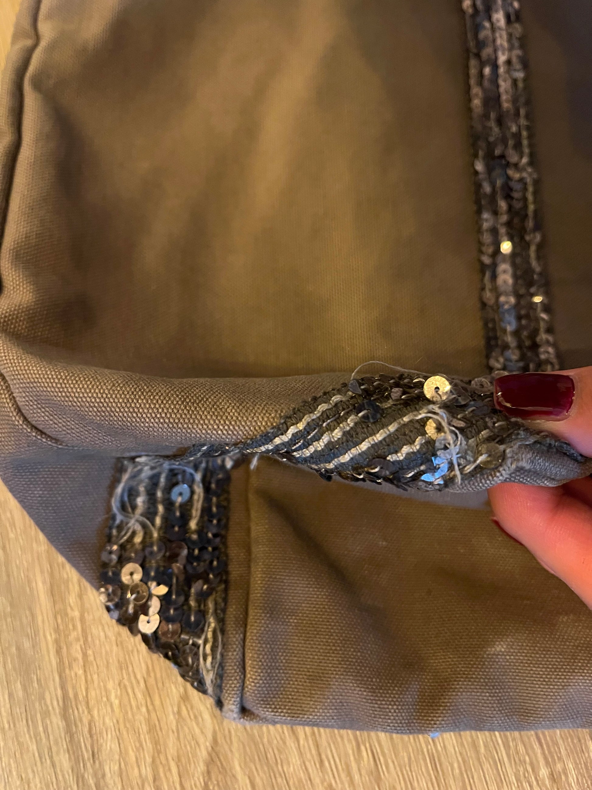 🔎 Etat : le sac a été porté mais reste de la seconde main en très bon état, peu de paillettes manquantes. Le tissu peut comporter des traces d’usures