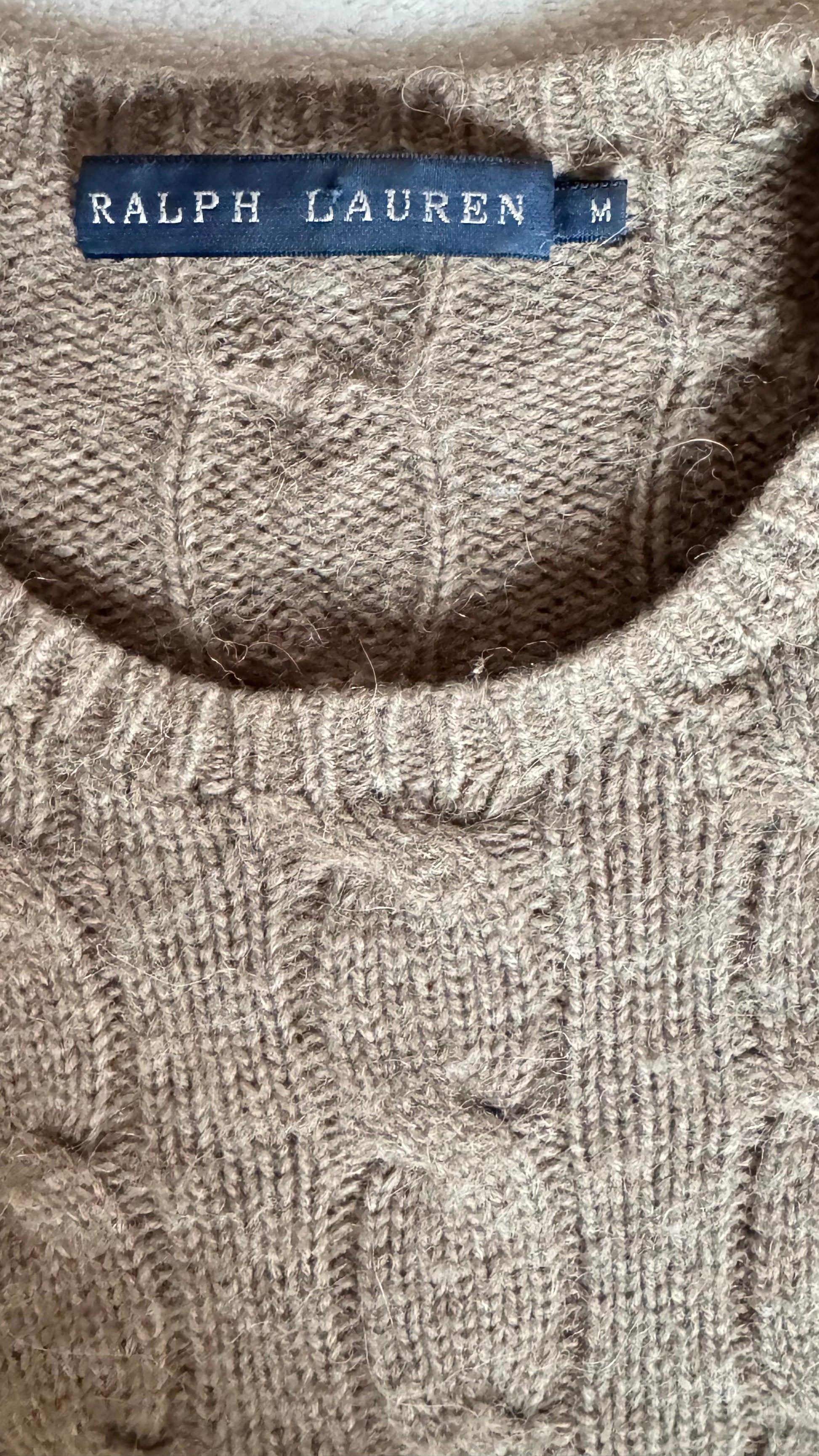 Pull torsadé marron laine et cachemire Ralph Lauren - S